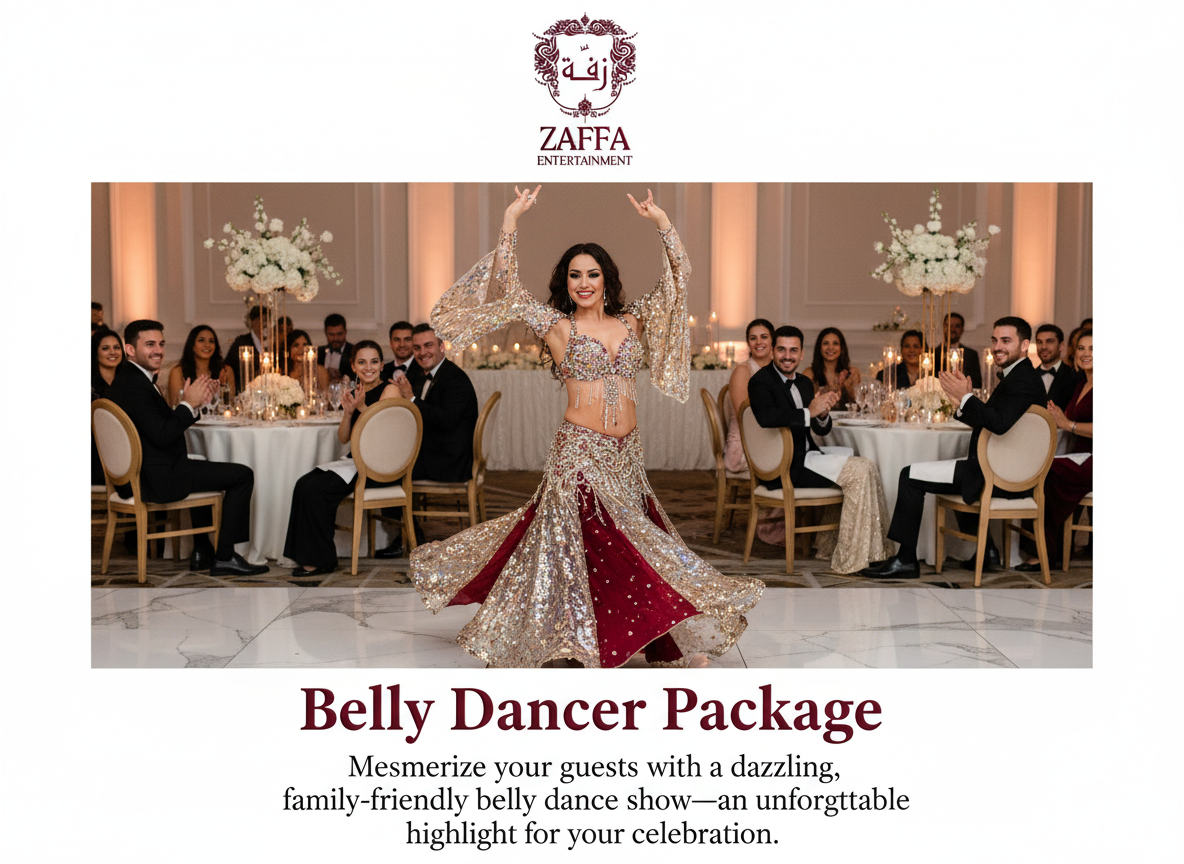 Our professional belly dancers are experts in reading the room, interacting tastefully with your guests to lift the energy and start the party.