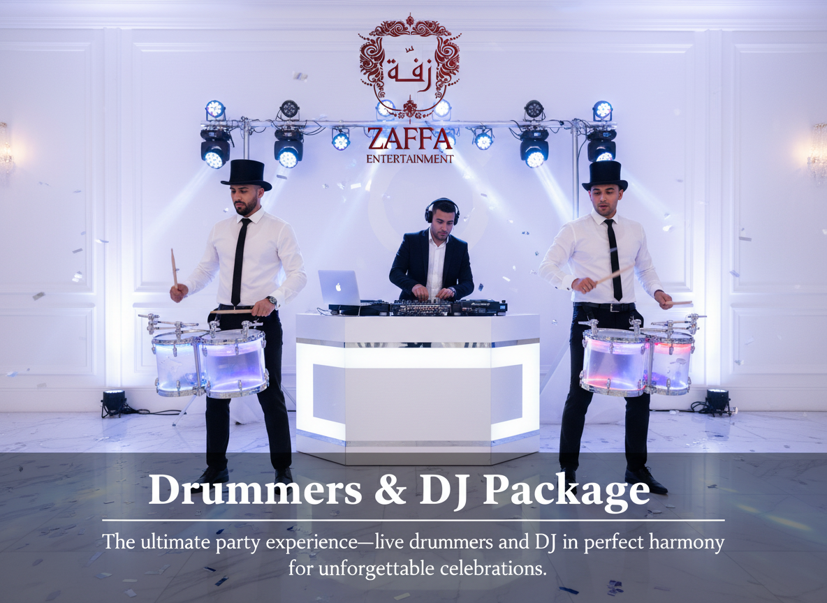 Combine the thunderous, spine-tingling beats of our live Zaffa drummers with the versatility of our expert DJ service.